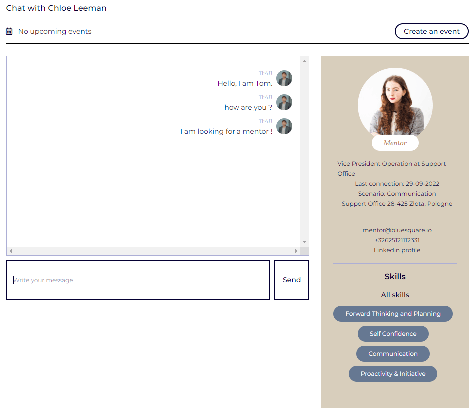To make it official, the mentor has to click on “Send mentoring chart”, complete it with these 3 elements and send it to the mentee who must sign it as well.